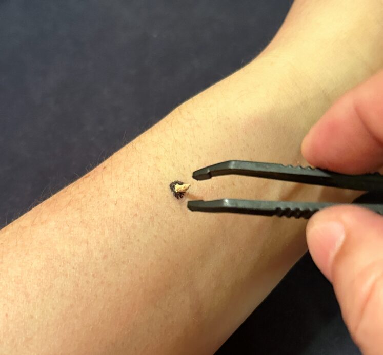 「引き鍼」は、硬くなった経絡に鍼を刺さずに押し当てて皮膚表面で引き抜くだけ