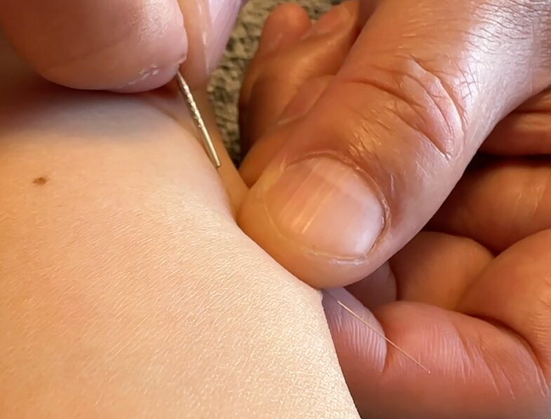 軽い刺鍼と、刺さない鍼「引き鍼」で、硬くなった経絡をほぐし、身体の気の巡りを正常に戻します